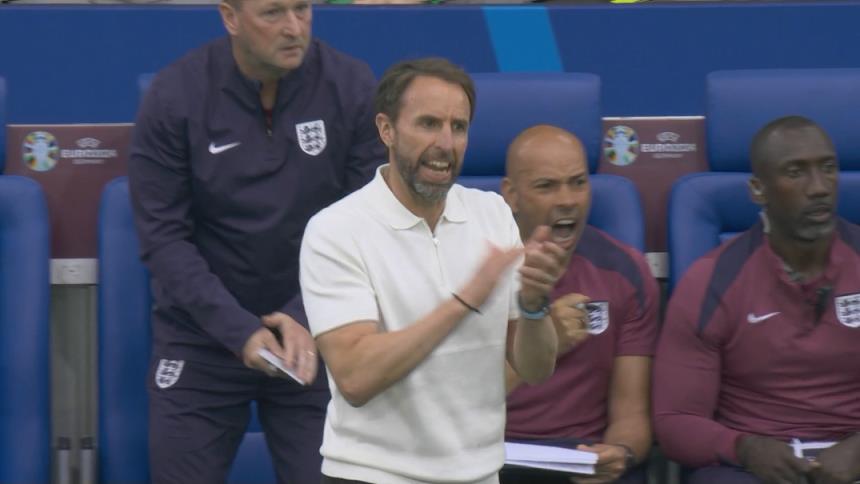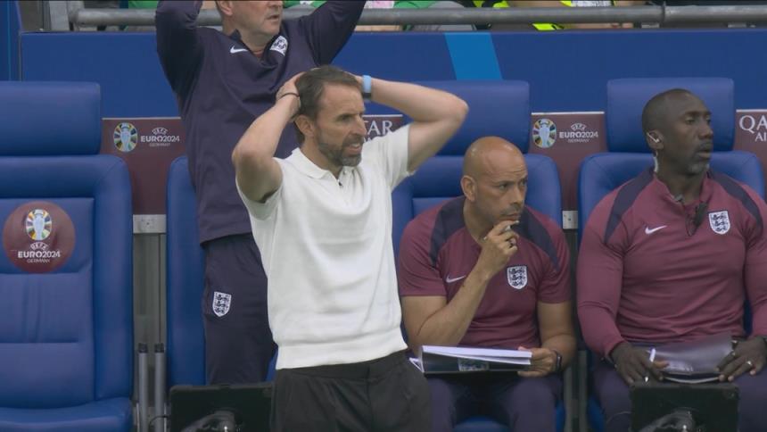 就这么踢!赖斯远射中柱,索斯盖特懊恼抱头后鼓掌激励球员