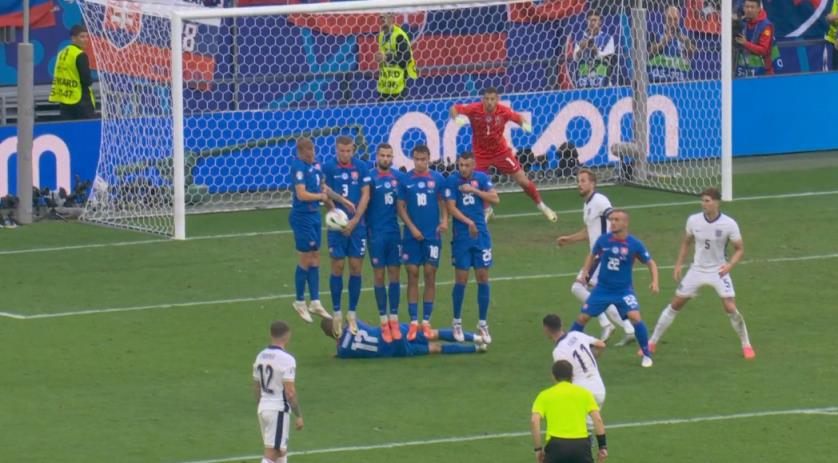 07月01日讯 英格兰vs斯洛伐克第60分钟,梅努突破造成库茨卡犯规,英格兰获得任意球。