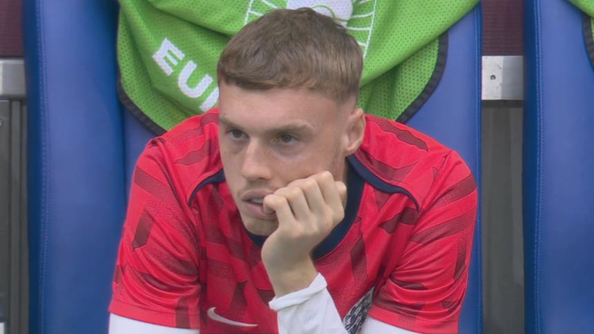 第31分钟,英格兰0-1落后,转播镜头给到替补席的英格兰攻击手帕尔默。
