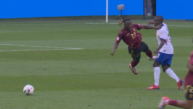 07月02日讯 法国vs比利时第58分钟,多库人球分过后倒地但裁判认定坎特不犯规,多库非常不满!