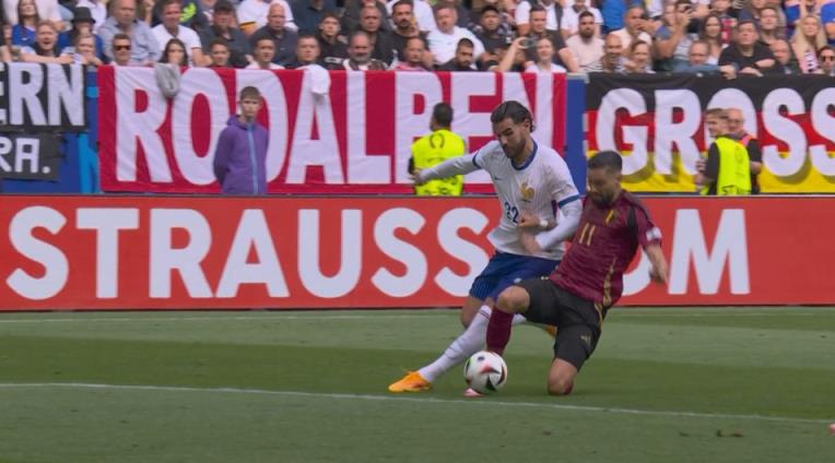 07月02日讯 法国vs比利时第16分钟,卡拉斯科反击突破在特奥防守下倒地,裁判示意没有犯规。