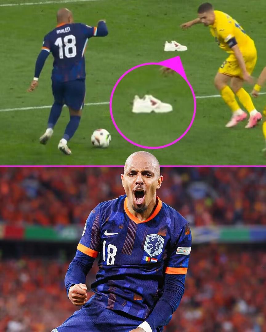 07月03日讯 荷兰vs罗马尼亚最后阶段,马伦奔袭内切一条龙破门,但镜头显示,马伦破门前禁区里躺着一双鞋,门将扑救前还踢走一只。
