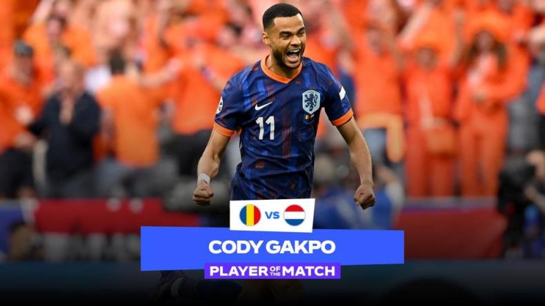 07月03日讯 欧洲杯1/8决赛,荷兰3-0完胜罗马尼亚。赛后欧足联官方宣布,传射建功的加克波当选本场最佳球员。