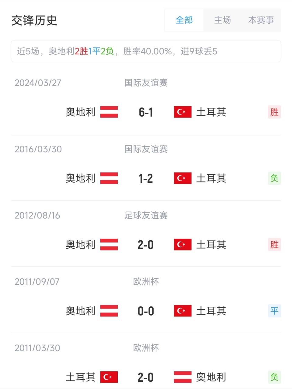 小组赛阶段,奥地利2胜1负积6分,进6球丢4球,排名D组第1出线;土耳其2胜1负,进5球丢5球,排名F组第2出线。