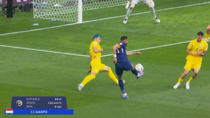 7月2日讯 欧洲杯1/8决赛,罗马尼亚vs荷兰。比赛第20分钟,加克波禁区左侧内切小角度爆射近角破门!荷兰1-0领先罗马尼亚。