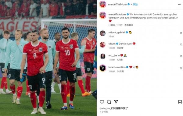 在阿拉巴受伤后接过队长袖标的萨比策在赛后通过社媒发声。萨比策晒出了自己和队友的谢场照,并表示:“我们会重振旗鼓的。感谢大家令人难以置信的信任和支持!为我们的国家感到非常骄傲。”