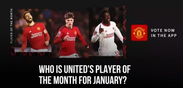 1月31日讯 曼联官方公布了队内1月最佳球员的候选名单,B费、加纳乔和梅努将竞争这一荣誉。