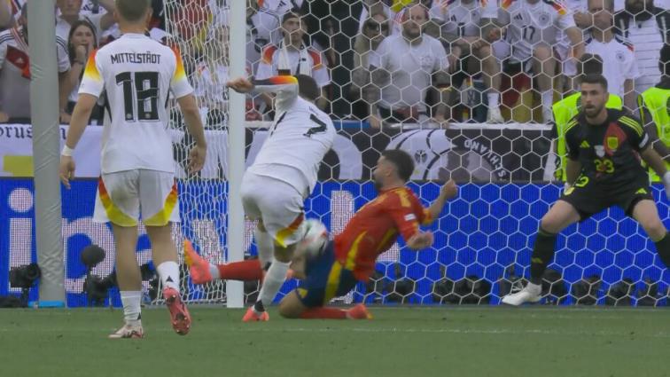 07月06日讯 西班牙vs德国第71分钟,菲尔克鲁格做球,哈弗茨近距离抽射被挡!卡瓦哈尔关键封堵!