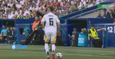 7月6日讯 北京时间0:00,欧洲杯1/4决赛首场较量,西班牙vs德国。克罗斯放倒佩德里,佩德里7分钟伤退;吕迪格、勒诺尔芒染黄,若晋级将停赛。