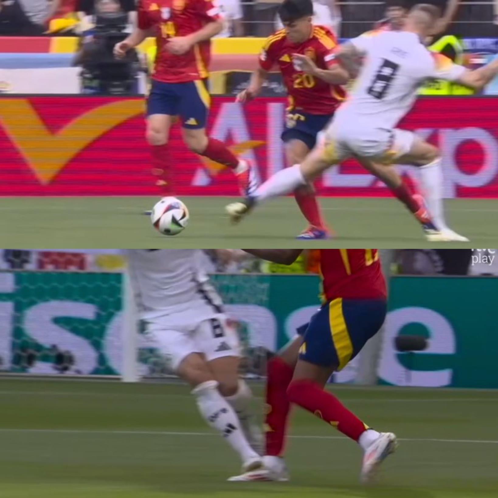 克罗斯连续凶狠犯规裁判未出牌,西班牙主帅找四官不断抗议