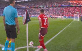 7月7日讯 欧洲杯1/4决赛,英格兰vs瑞士。加时赛第117分钟,瑞士队沙奇里角球直接攻门击中横梁!