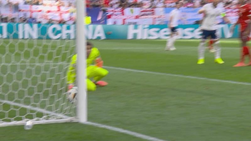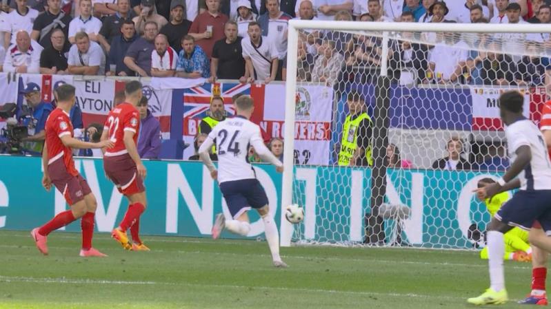 第80分钟,萨卡无解内切射门击中立柱内侧入网,英格兰扳平,瑞士门将索默无能为力目送球入网。