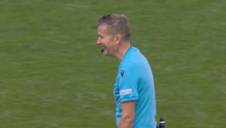 07月07日讯 英格兰vs瑞士第56分钟,主裁奥尔萨托不慎“参与”英格兰防守,挡下瑞士直塞。