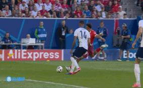 第74分钟,沙尔右路禁区外直塞,恩多耶跟进低平球传中,斯通斯前点解围踢呲,恩博洛后点抢点破门,瑞士1-0英格兰。↓