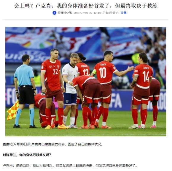 在7月8日的采访中,卢克肖确认自己的身体状态可以首发,当时他表示:是的当然,我认为我可以,但显然这是主教练的决定,但我觉得自己身体准备好了。