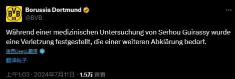 刚刚多特官方X账号更新,却并不是官宣,而是宣布在对吉拉西体检时发现球员有伤,需要进一步检测。