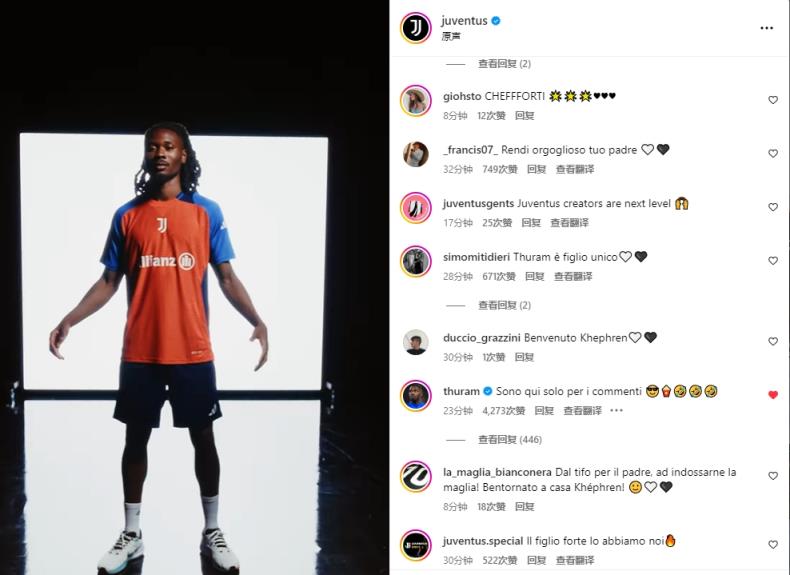 马库斯-图拉姆在尤文官宣社媒中评论:“我只是来看评论的
