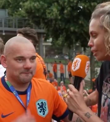 路过的荷兰球迷荷兰赛前采访斯内德,这造型还认得出来吗?