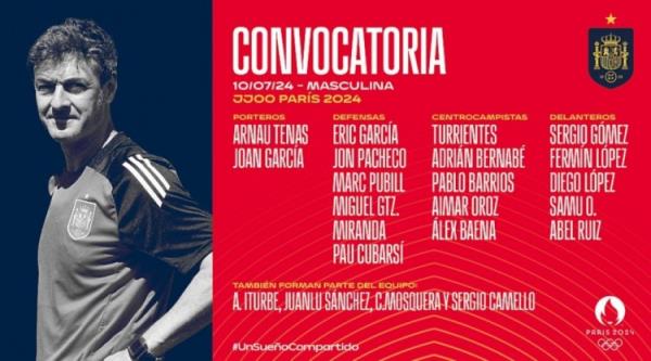 7月10日讯 为了迎接即将到来的巴黎奥运会,西班牙国奥公布了22人大名单,埃里克-加西亚、库巴西以及费尔明入选。