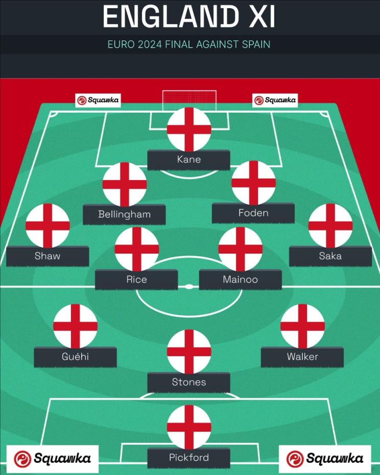 07月15日讯 英格兰对阵西班牙决赛开打在即,目前双方已经公布了本场比赛的首发阵容。Squawka对比了三狮军团2020年欧洲杯和2024年欧洲杯的首发。