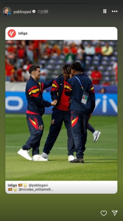 07月15日讯 2024欧洲杯决赛,西班牙vs英格兰。赛前加维随队来到决赛现场,并更新了社媒。
