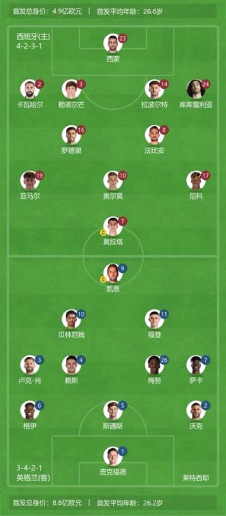 前锋:19-亚马尔、7-莫拉塔、17-尼科-威廉姆斯