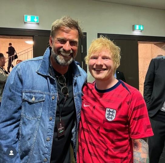 7月16日讯 欧洲杯决赛的看台上,利物浦功勋主帅克洛普是观众之一。卸任利物浦主帅后,克洛普显然没有了昔日的诸多压力,他看起来心情不错并在社交媒体上晒出了和著名歌手“黄老板”(Ed Sheeran)以及德国籍NBA球星施罗德的合影。