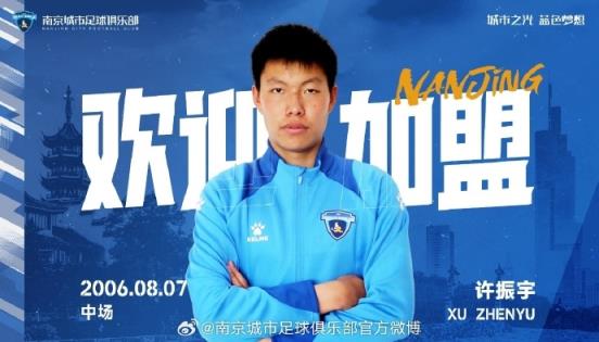 南京城市足球俱乐部热烈欢迎许振宇、余梦辉的加盟,希望两位小将能够认真学习,努力训练,用充沛的活力和蓬勃的朝气为球队注入新鲜的血液和年轻的力量!俱乐部坚信,你们的未来拥有无限的可能!
