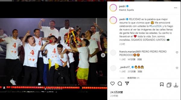 佩德里写道:“幸福这个词最能概括我们昨天的经历