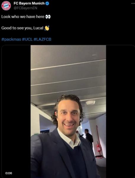 拜仁官推晒出了托尼的小视频,并写道:“看看谁来了?很高兴见到你,卢卡!”