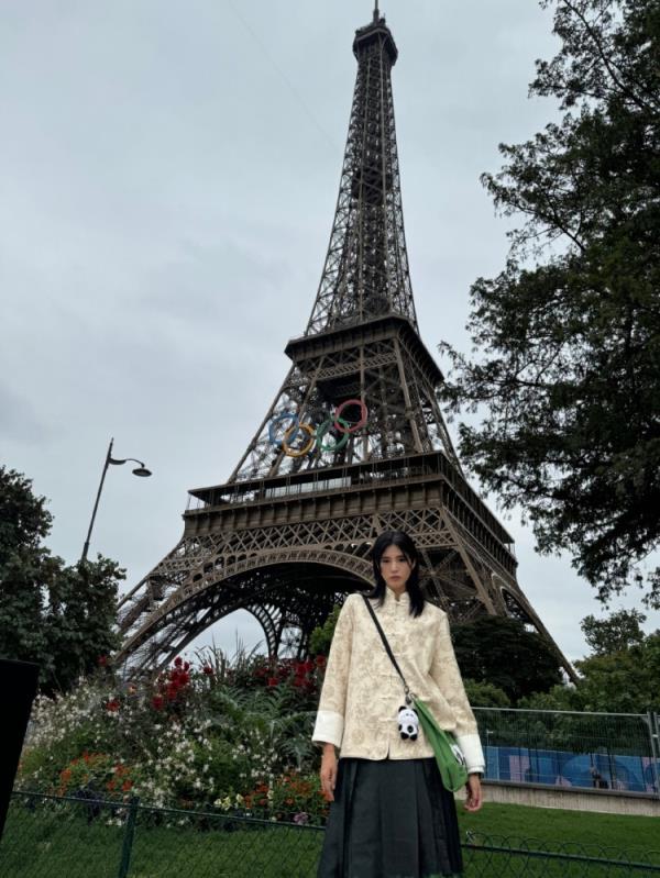 7月27日讯 巴黎奥运会开幕式将于7月27日举行,前中国女足球员赵丽娜社媒分享在巴黎旅游的照片,并配文:“把国风穿到奥运会开幕式现场。”