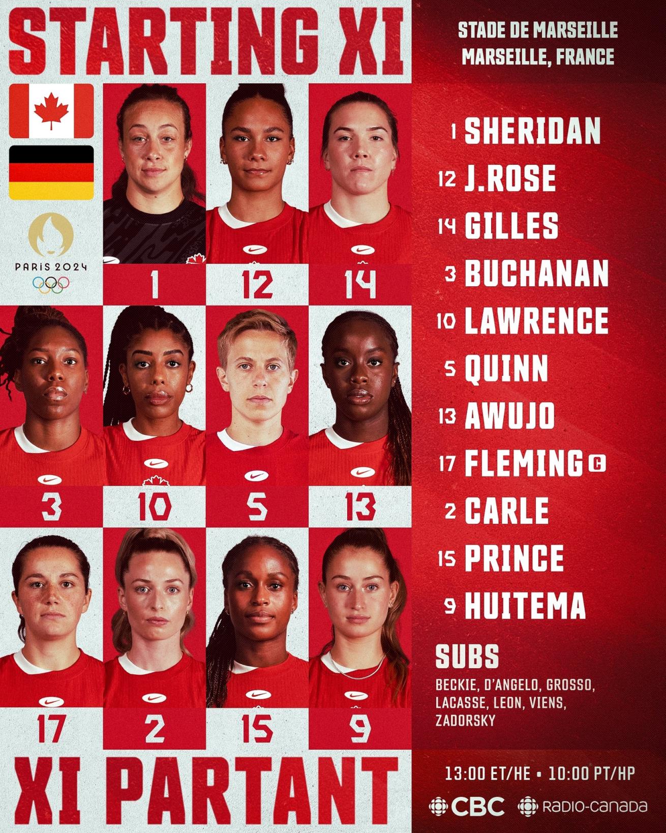 08月04日讯 奥运女足1/4决赛,加拿大女足vs德国女足,赛前首发名单公布。