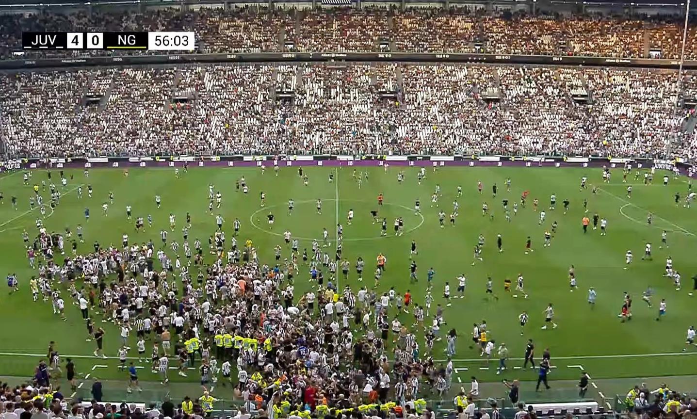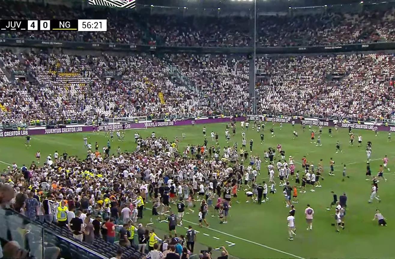 08月07日讯 家族赛尤文一线队vs尤文青年队,比赛因大量球迷提前冲进球场而提前结束,结束时比分为4-0。