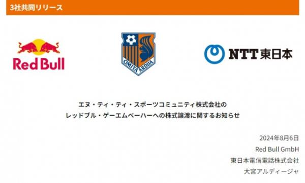 大宫松鼠的东家——日本电信电话东株式会社,已经和红牛集团签署了一份100%股份转让协议,将于2024年9月正式生效。