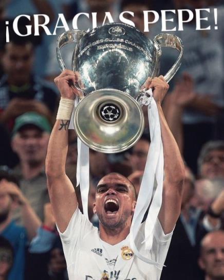 佩佩是皇家马德里和欧洲足球史上最出色的后卫之一,他永远会得到所有皇马球迷的认可和爱戴。皇家马德里祝愿他和他的家人在新的人生阶段一切顺利。”