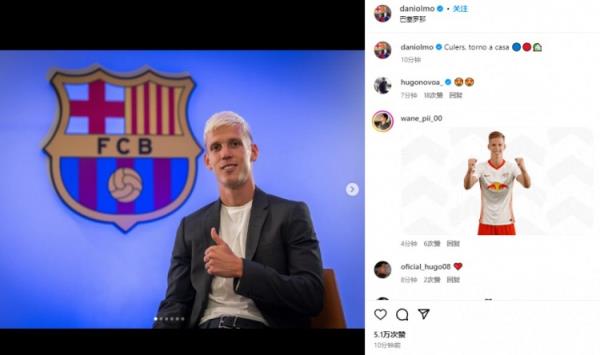 奥尔莫晒出了自己的签约照,并言简意赅配文道:“巴萨球迷们,我回家了
