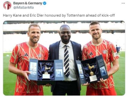 8月11日讯 拜仁在今日热身赛赴客场再战热刺,热刺官方在赛前对两位旧将进行致敬。