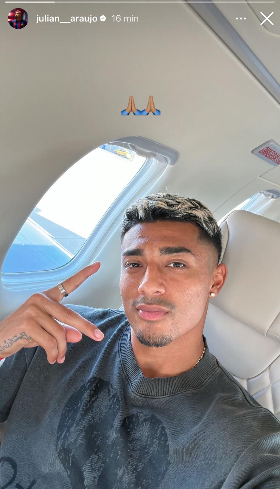 在个人社媒,朱利安-阿劳霍晒出一张他在飞机上的照片,他即将飞往英国,完成加盟伯恩茅斯的转会。