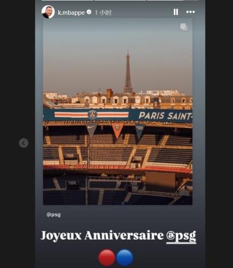 巴黎圣日耳曼在今日迎来建队54周年,姆巴佩也通过社媒晒出了王子公园球场的照片,并艾特了巴黎官方账号,配文:“生日快乐”。