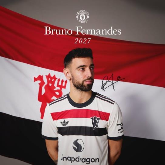 B费上一次与曼联续约是在2022年,当时他与曼联将合同续签到了2026年6月底。
