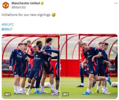 曼联官推晒出两人参加合练的照片,红魔将在本周末坐镇主场迎战富勒姆。