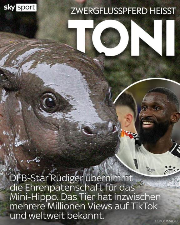 8月15日讯 德天空消息,今夏,柏林动物园新出生的小动物们引爆网络,其中最“网红”的当属侏儒河马宝宝,柏林动物园收到了20000余条粉丝发来的起名建议。14日,柏林动物园宣布,最终决定为小河马取名“托尼”(Toni),灵感来源是这只小河马的认养者,德国中卫安东尼奥-吕迪格的名字。Antonio中含有“Toni”4个字母。