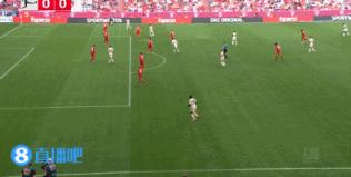 第17分钟,拜仁反击机会,穆西亚拉的斜传传到了队友身后。↓