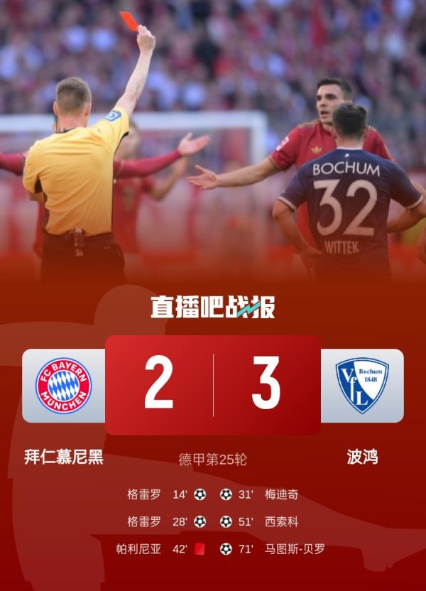 3月9日讯 北京时间8日晚,德甲第25轮,拜仁主场2-3不敌波鸿。